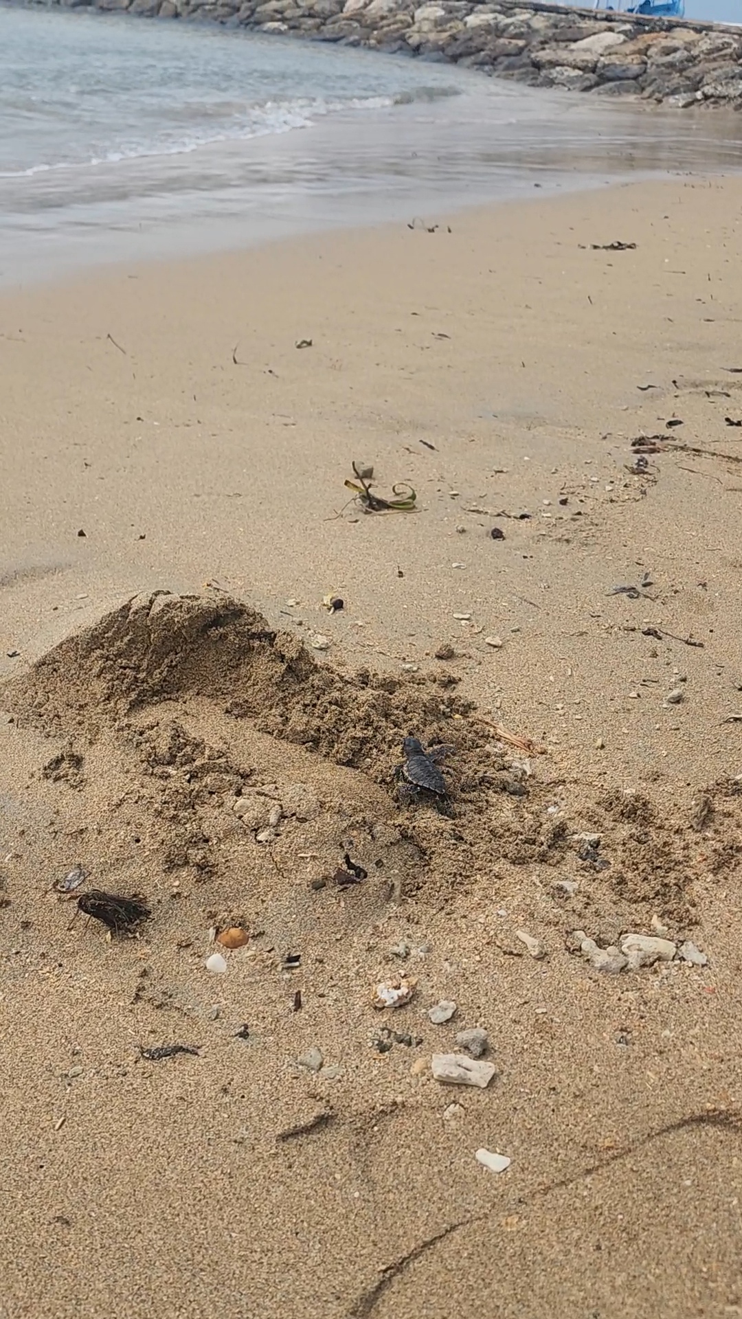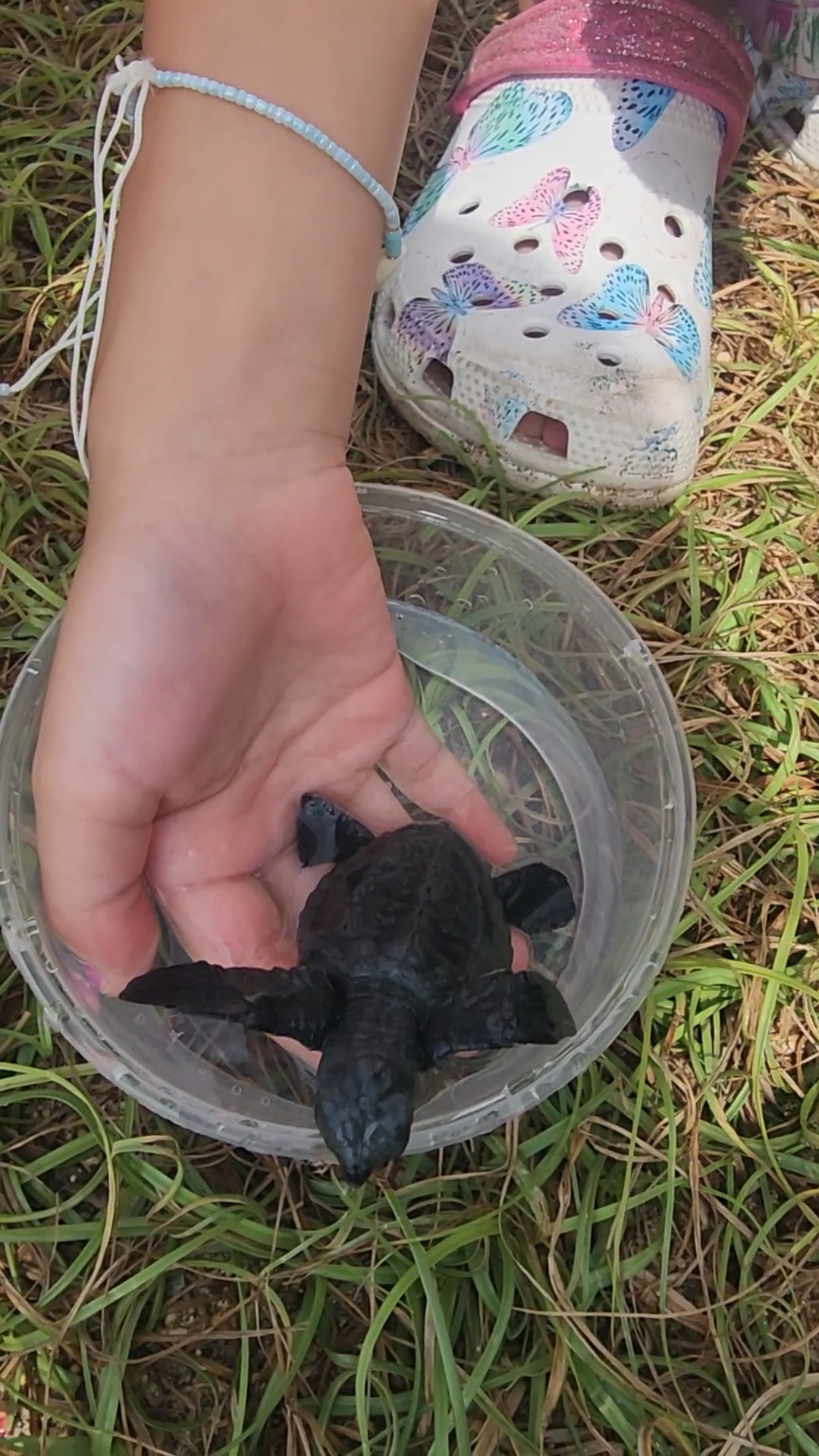 어떤 남자분 두분이서 땅속에서 뭘 꺼내시더라구요. 다가가서 보니 그게다 부화한 새끼 거북이들이더라구요.